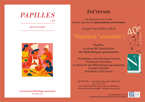 Depuis près de trente-cinq ans, Papilles, la revue de l’association des Bibliothèques gourmandes, œuvre pour la connaissance, la valorisation et la diffusion du patrimoine et des comportements gourmands de toutes origines.