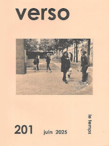Saluons, d’abord, sa belle longévité. Fondée en 1977, la revue Verso fêtera bientôt ses 50 ans d’existence. Mais ne vieillissons pas trop vite cette publication poétique qu’Alain Wexler anime et confectionne depuis toutes ces années avec une dévotion grande. Toujours aussi sobre et soigné dans sa mise, ce numéro 201 daté de juin 2025 s’habille d’une très estivale couverture couleur melon qui lui va fort bien au teint. Son thème : le temps. Matière à réflexion et création décidément inépuisable, qui inspire ici une trentaine d’auteurs, dont certains d’ailleurs sont publiés pour la première fois dans la revue.