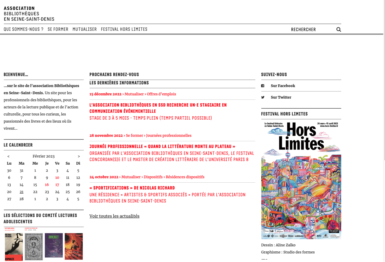 Association Bibliothèques en Seine-Saint-Denis Publié le 21 février 2023 Partager cet article Facebook Twitter Google+ Retour à : Warning: Undefined variable $posttypehum in /home/entrevb/www/wp-content/themes/entrevues-new/single.php on line 147