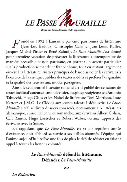 Le Passe Muraille Publié le 15 octobre 2015 Partager cet article Facebook Twitter Google+ Retour à : Warning: Undefined variable $posttypehum in /home/entrevb/www/wp-content/themes/entrevues-new/single.php on line 147
