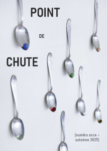 La revue de création littéraire Point de chute est née d’un désir commun d’écriture de jeunes poètes. Elle entend offrir un abri, une cabane, à celles et ceux qui veulent partager leurs textes poétiques (au sens large). Cette cabane, nous la reconstruirons ensemble chaque automne et chaque printemps.