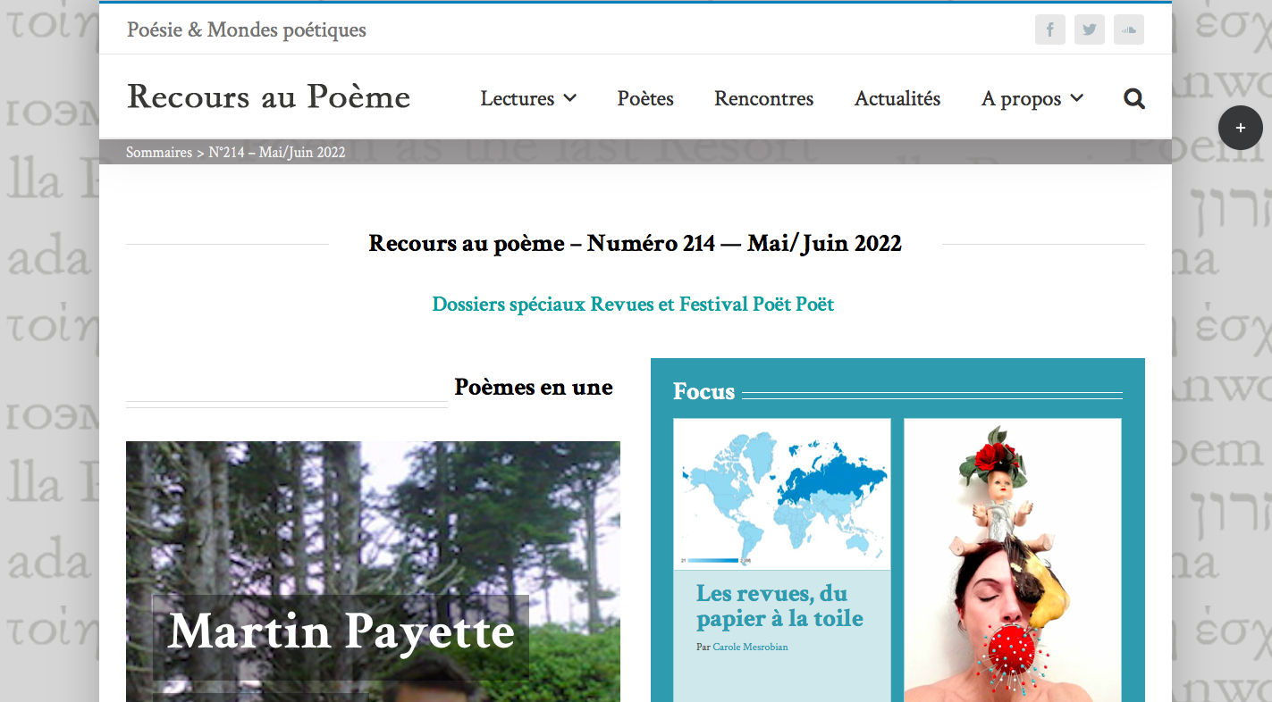 Recours au poème Publié le 9 mai 2022 Partager cet article Facebook Twitter Google+ Retour à : Warning: Undefined variable $posttypehum in /home/entrevb/www/wp-content/themes/entrevues-new/single.php on line 147