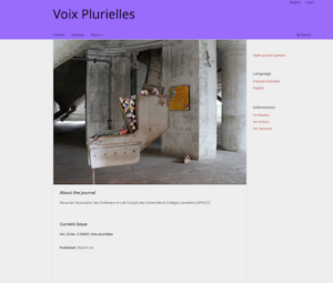Voix plurielles est la revue de l’Association des Professeur-e-s de Français des Universités et Collèges Canadiens. Elle publie des articles, des comptes-rendus et des notes de recherche de nature littéraire, linguistique, culturelle et pédagogique. Les auteurs publiés sont ou deviennent membres de l’Association des Professeur-e-s de Français des Universités et Collèges Canadiens. La revue est normalement publiée le 1er septembre et le 31 mai. Dans la mesure du possible, les numéros thématiques alternent avec les numéros d’intérêt général.